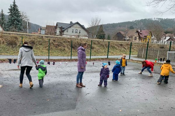 Die Kinder müssen mit Ihren Eltern Stationen durchlaufen oder wir führen gemeinsam unterschiedliche Übungen aus.